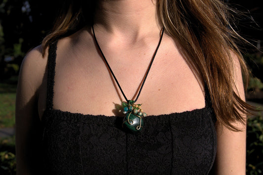 Caterpillars on a Leaf Malachite Necklace