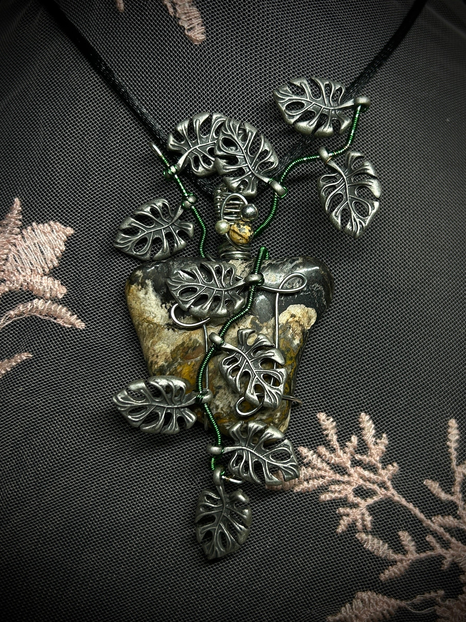 Bring a touch of nature to your neck with this playful Jasper Mini Monstera Necklace! A beautiful piece of jasper stone is artfully wrapped to mimic the iconic split leaves of a monstera plant, creating a quirky botanical charm. Perfect for plant lovers and crystal enthusiasts alike, this unique pendant combines earthy elegance with whimsical style. Wear it as a conversation starter or gift it to someone who appreciates the magic of plants and stones.