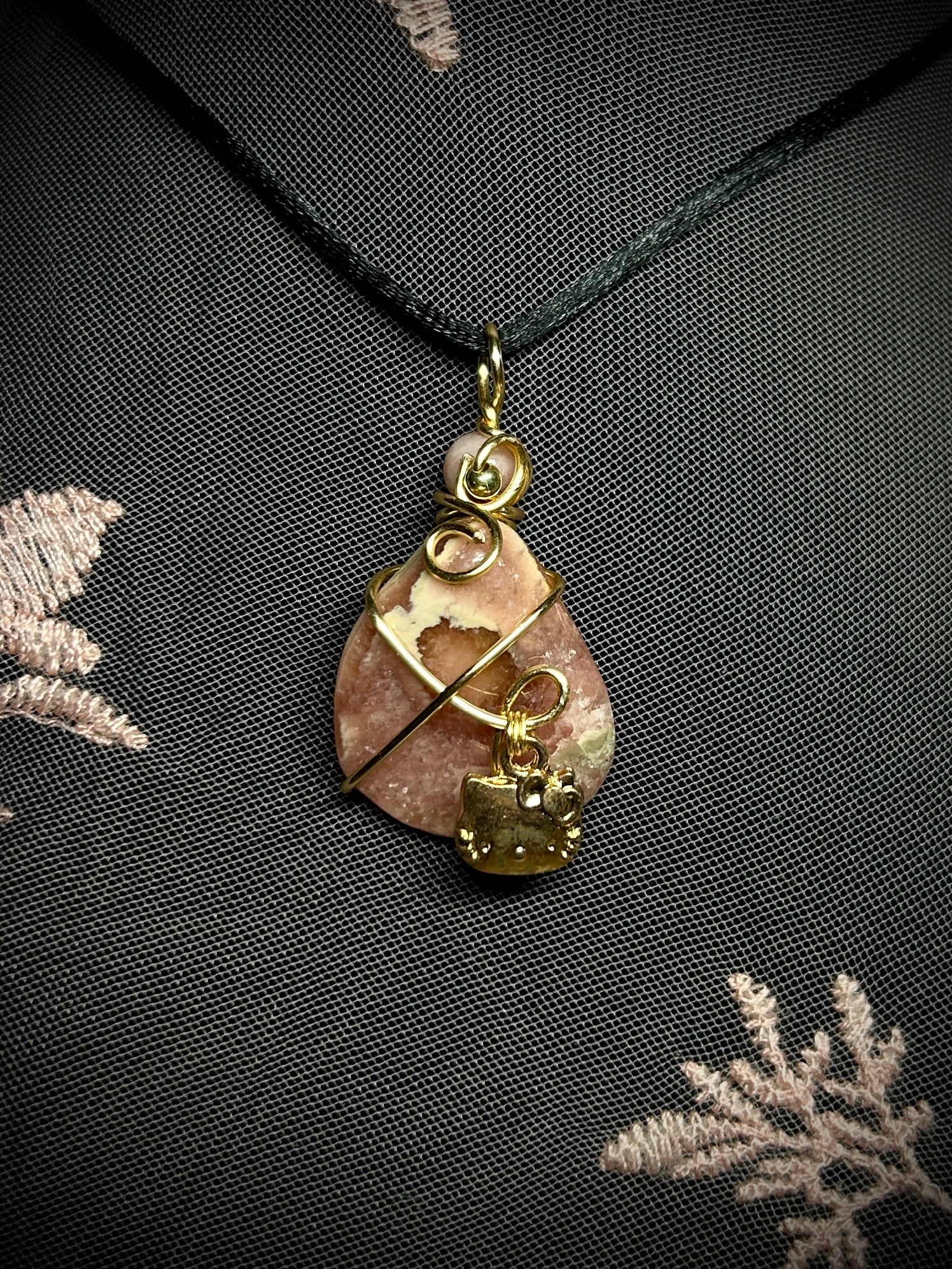 Rhodonite with Hello Kitty Charm Necklace